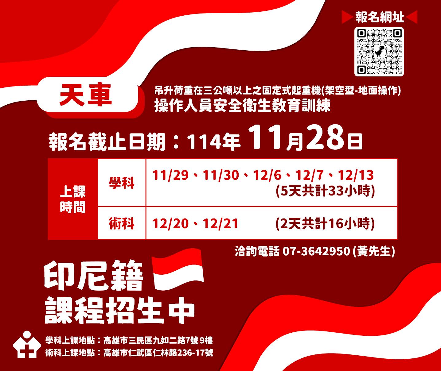 訓練教室:高雄市楠梓區學專路777號(地圖)
